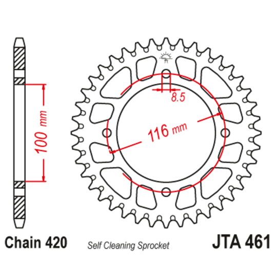 Hliníková reťazová rozeta JT JTA 461-50BLK 50T, 420 čierna