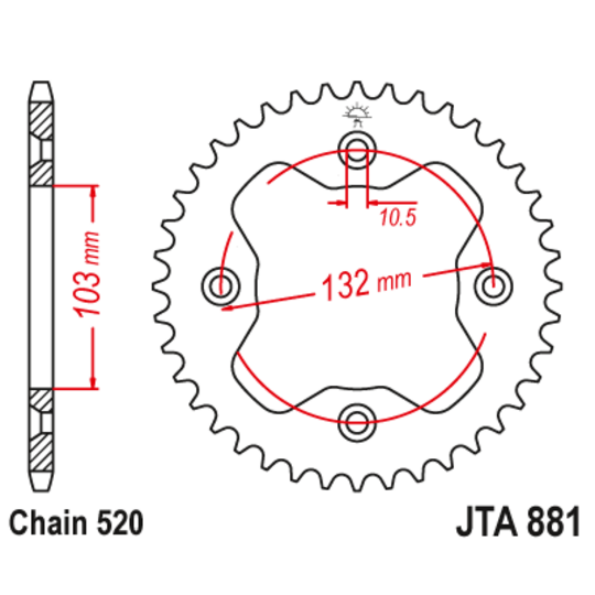 Hliníková reťazová rozeta JT JTA 881-38ORG 38T, 520 pomarančová