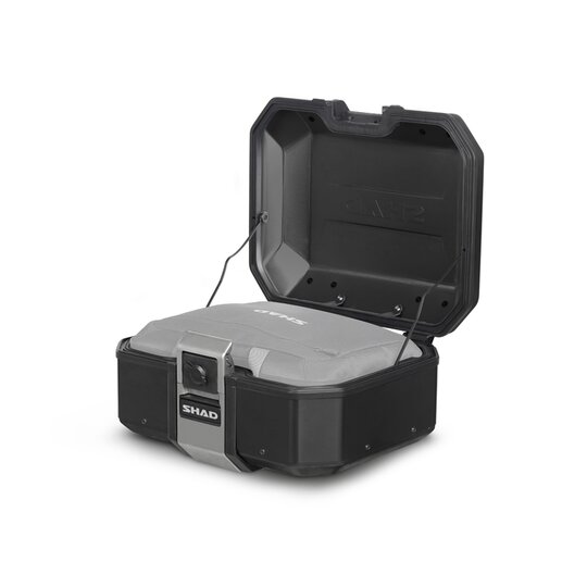 Kompletná sada čiernych hliníkových kufrov SHAD TERRA BLACK , 37 litrov vrchný kufor, 36/36 litrov bočné kufre, vrátane montážnej sady a platni SHAD HONDA CB 500 X