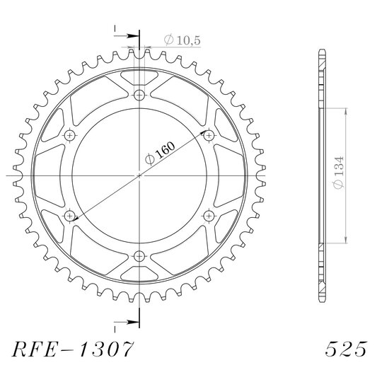 Reťazová rozeta SUPERSPROX RFE-1307:45-BLK čierna 45T, 525