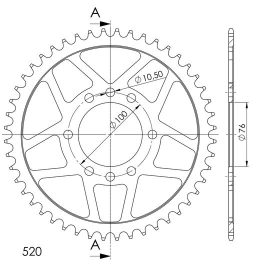 Reťazová rozeta SUPERSPROX RFE-1825:48-BLK čierna 48T, 520