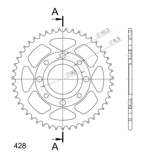 Reťazová rozeta SUPERSPROX RFE-269:47-BLK čierna 47T, 428