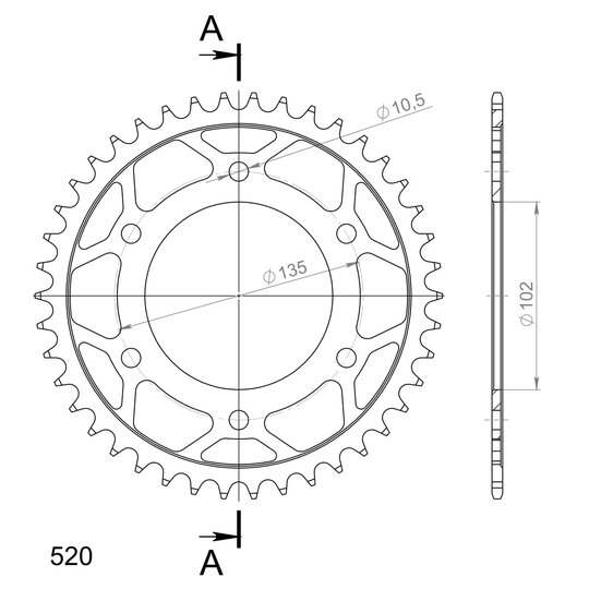 Reťazová rozeta SUPERSPROX RFE-401:42-BLK čierna 42T, 520