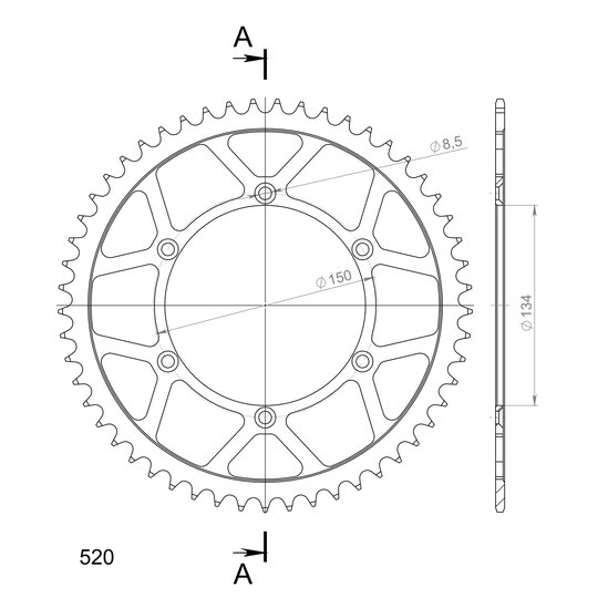 Reťazová rozeta SUPERSPROX RFE-460:53-BLK čierna 53T, 520