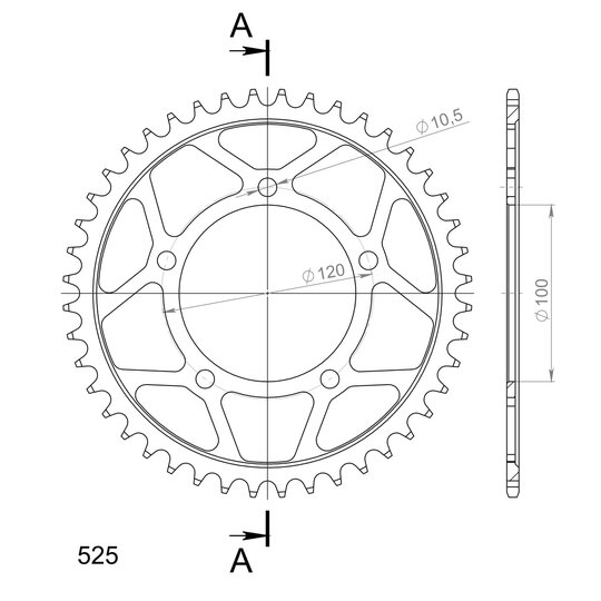 Reťazová rozeta SUPERSPROX RFE-702:44-BLK čierna 44T, 525