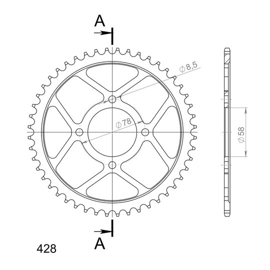Reťazová rozeta SUPERSPROX RFE-810:48-BLK čierna 48T, 428