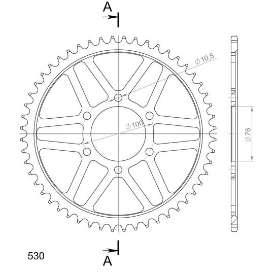 Reťazová rozeta SUPERSPROX RFE-816:52-BLK čierna 52T, 530