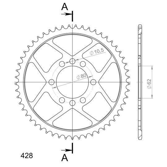 Reťazová rozeta SUPERSPROX RFE-843:53-BLK čierna 53T, 428